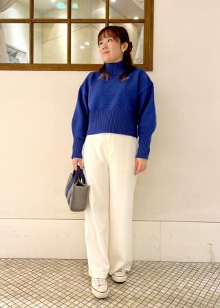 ・ハイウエストボトムに合わせてバランス良く着こなして。