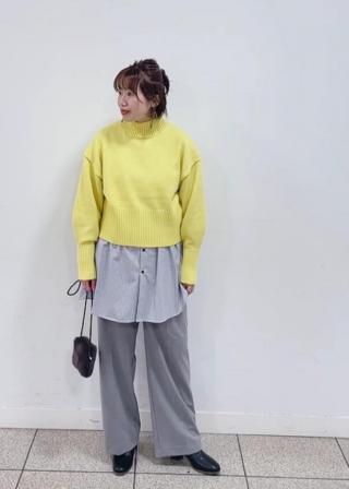 ・ハイウエストボトムに合わせてバランス良く着こなして。