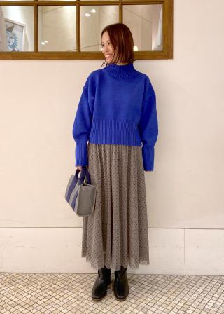 ・ハイウエストボトムに合わせてバランス良く着こなして。