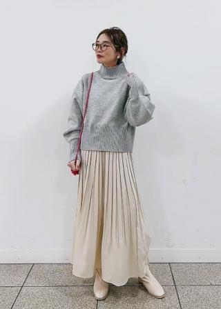 ・ワイドシルエットのハイネックプルオーバー。
