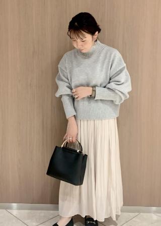 ・ワイドシルエットのハイネックプルオーバー。