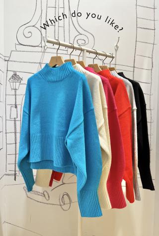 後ろの丈だけ少し長めに作っているので、トレンドの短丈でも安心して着ていただけます。
