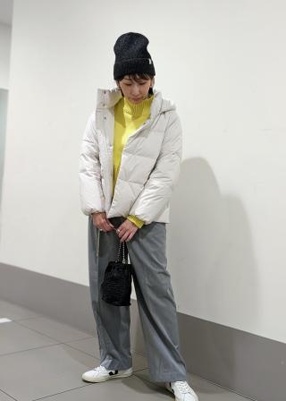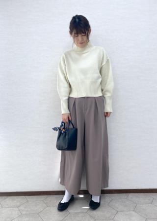 ・ハイウエストボトムに合わせてバランス良く着こなして。