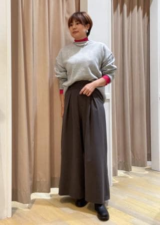 お袖〜胴と全体的にゆったりとしたシルエットです。前部分が少し短くなっているのでシャツやシアータートル等とのレイヤードが楽しめます◎