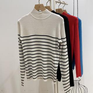 ・シンプルに着られる、ハイネックのリブニットプルオーバー。