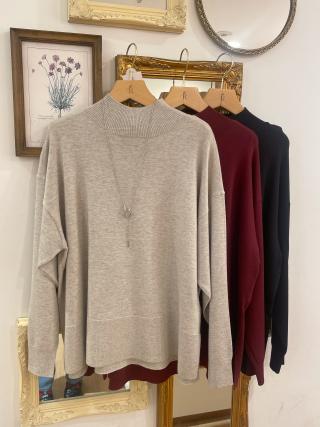 ・ゆったりサイズが今年らしい、ハイゲージ仕立ての長袖ハイネックニット。