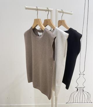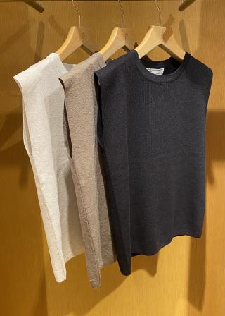 ・素材にラメを仕込んだ、ほんのりと華やかなゼロスリーブニットプルオーバー。