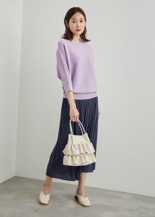 ・ドレープの出るゆったりとしたシルエットが女性らしいドルマンスリーブニット。