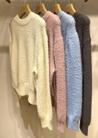 ・毛足のある素材を使った、ふんわり優しい質感の長袖クルーネックセーター。