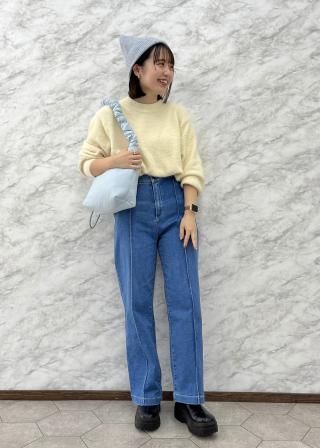 チクチクしない柔らかな肌触りです。短めな着丈もボリュームのあるボトムとピッタリです。