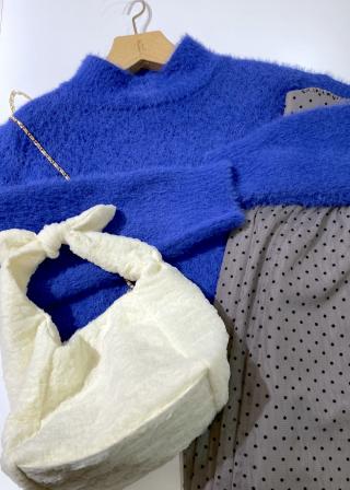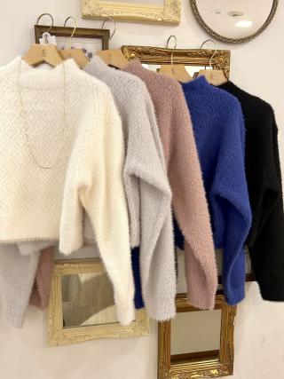 ふわふわでもっちりやや肉厚なシャギーニットです。
