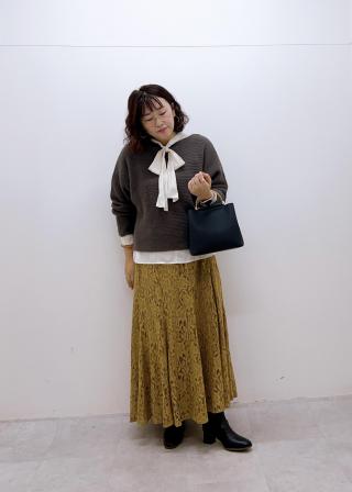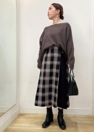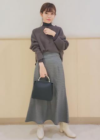 ・プリーツスカートに合わせてエレガントなお出かけコーデに。