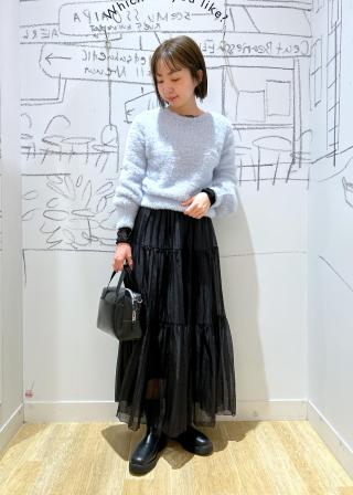 毛足の長い素材ですが落ち感があるのでボリューム感が出すぎず華奢見えします。
