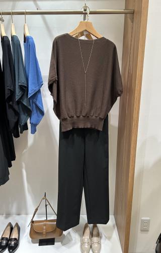 ・裾リブですっきりするので、ワイドパンツやフレアスカートもバランス良くマッチ。
