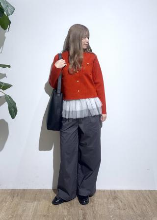 着丈が少し長めに作られているのでカーディガンやニット、スウェットのインナーとして下から見せるとお洒落です。チュールで気になる腰回りが素敵にカバーできますよ♡