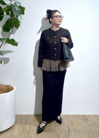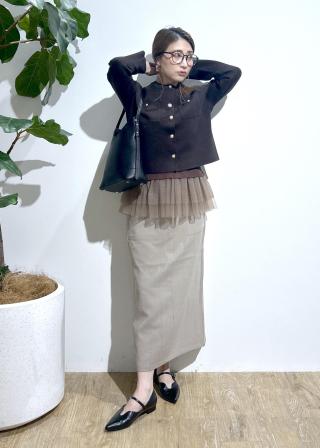 ・ナロースカートに合わせた大人な着こなしも素敵。