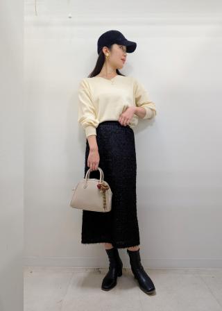 ・ワイドパンツやロングスカートと合わせて、上品で大人っぽい着こなしに。
