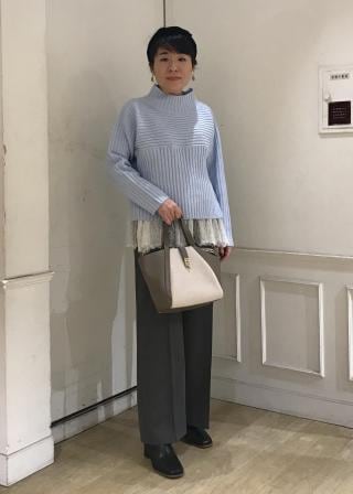 もちもちリブ切り替えニットプルオーバー/イージーケア・リンクコーデ