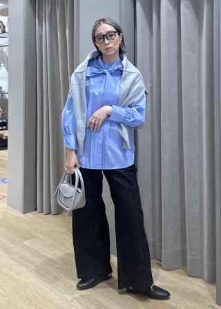 ・センタープレス入りのテーパードパンツやワイドパンツと合わせれば、きちんと感が求められるオフィスシーンにも対応可能。足元をパンプスやローファーにすると、より上品に。