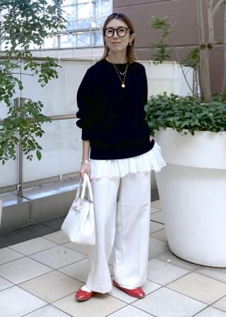 ・フレアスカートやワイドパンツなど、トラッド感のあるボトムと好相性。
