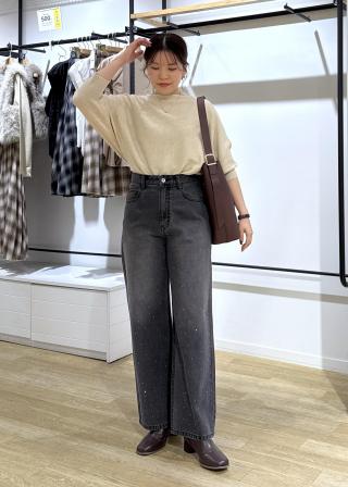 裾が広めのリブ素材ですっきりしている為、フレアスカートやワイドパンツにもバランス良く着こなしができます。