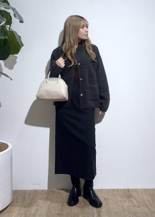 商品写真にもありましたが、ブラウンのロングスカートにボルドーのカーディガン合わせが最高に可愛い一着です。