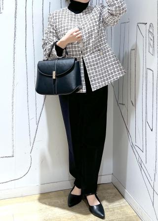 ・差し色小物や柄アイテムを合わせてシンプルコーデのアクセントに。