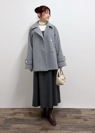 ・フレアロングスカート+ショートブーツで、女性らしさ香る大人ナチュラルコーデに