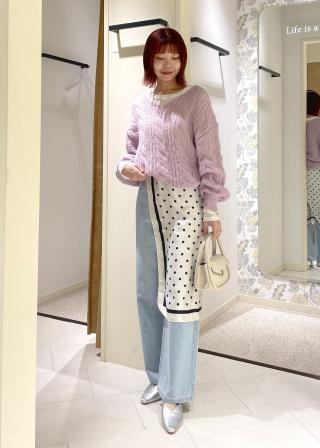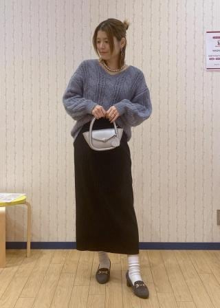 ・マットな印象のニットなどでサラッと素材感の違うスカートやデニムなどとのコーディネートがおすすめ。