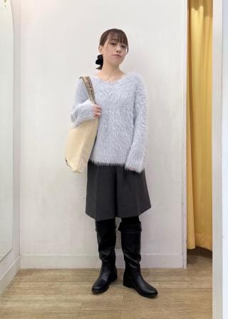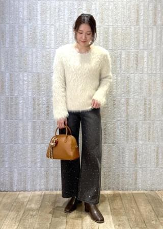 ・ナチュラルなツヤ感のあるフェザーヤーンをMIXした束感のある毛足感がポイント。