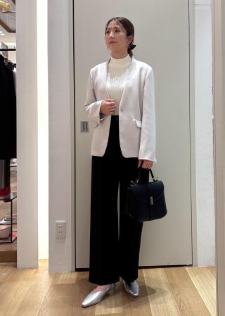 ・首元は高すぎないハイネックで、顔まわりを上品に演出。