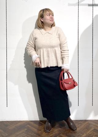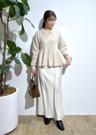 ・アンゴラ混のふんわりとした柔らかさを活かした、女性らしいペプラムニット。