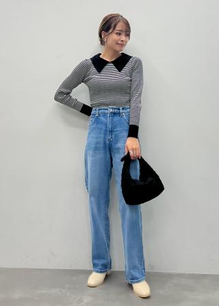 厚すぎない生地感で合わせやすいコンパクトなシルエットですが、締め付け感なく着やすいサイズ感です。