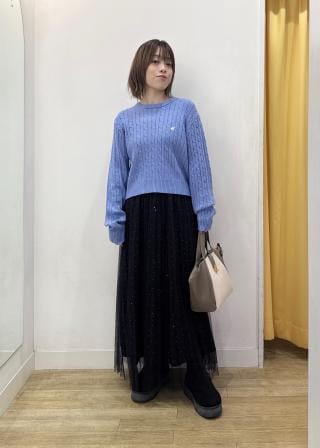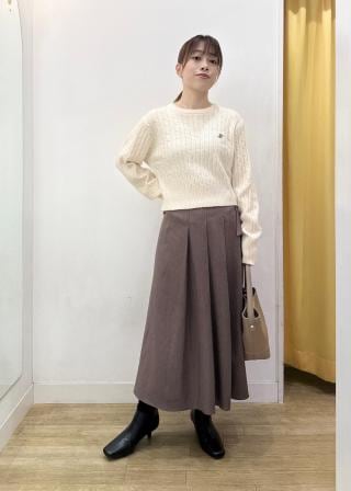 ・立体感のあるケーブル編みと、ほんのり短めのクロップド丈が絶妙にマッチ。
