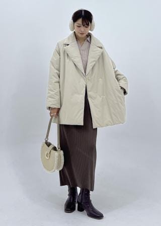 ・ややゆとりのあるシルエットで、パンツにもスカートにも合わせやすい一枚。