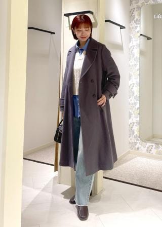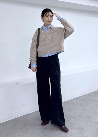 程よいゆとりがあるので、シャツやタートルネックとのレイヤードもおすすめです。