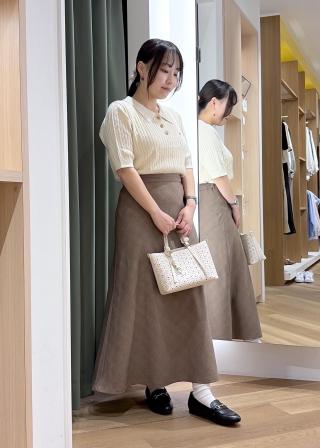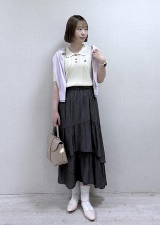 ・フェミニンなスカート×ジャケットのインナー使いで上品な雰囲気に。