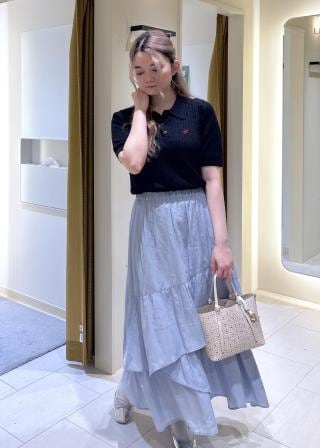・フェミニンなスカート×ジャケットのインナー使いで上品な雰囲気に。