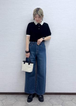・シンプルなワイドパンツで大人なきれいめカジュアルが完成。