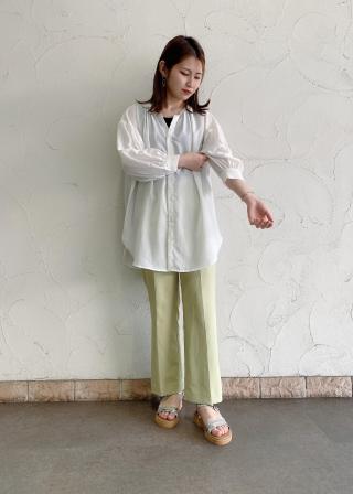 ・カラーパンツに合わせて、春らしいトレンドスタイルに仕上がります。