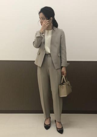 おすすめコーデ:パンツとのコーディネートでオフィススタイルがおすすめです。