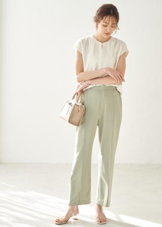 ・タンクトップ×テーパードパンツのシンプルスタイルに、さらりと羽織っても◎。