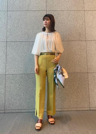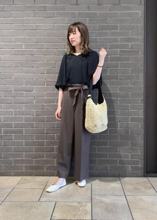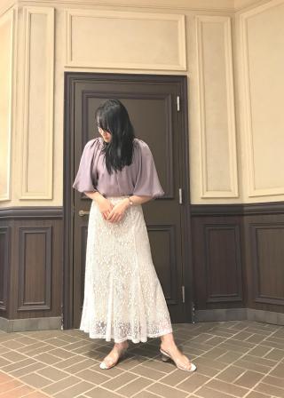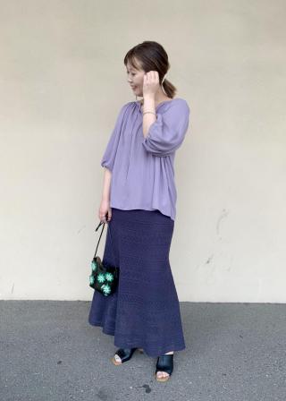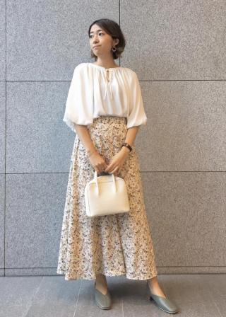 おすすめコーデ:リボンを後ろにすると、シンプルになるので、オフィスルックにもおすすめです。裾が広がるデザインなので、インアウトどちらでも綺麗にお召しいただけます。リボンを前にするときは、垂らすとおしゃれです。