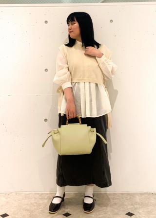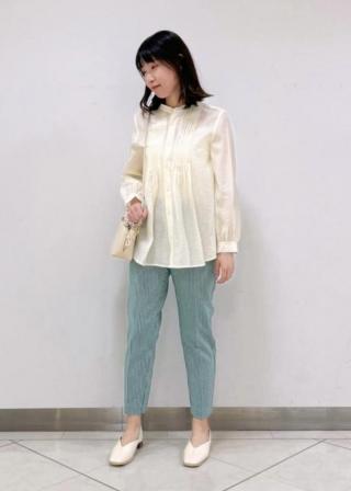 おすすめコーデ:シアー素材で色味が強く出過ぎない為、ミントグリーンや水色などカラーボトムと合わせても可愛いです!