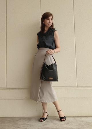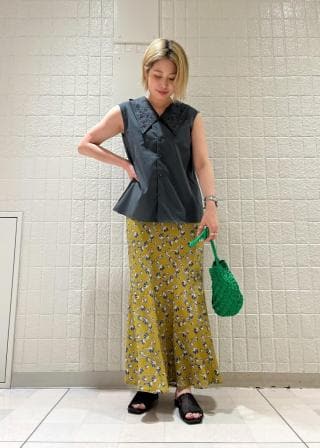 ・ジャストウエストで穿くフレアスカートにインして、クラシカルなスタイリングに。