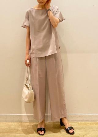前後逆にして着られる、2WAY仕様でラッフルスリーブなので二の腕がカバー出来ます。同素材のパンツとのセットアップスタイルや、タイトスカートにインしたきれいめなお出かけスタイルがおすすめです。