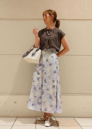 ・柄物スカートに合わせてコントラストを楽しんで。