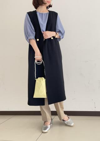 サイズ感:全体的にゆったりしているので身体のラインを拾わないサイズ感です。丈はヒップにかかるくらいで長すぎないのでスッキリお召しいただけます。