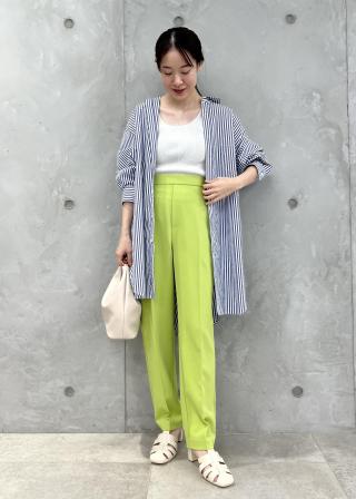 おすすめコーデ:ロング丈のボトムス合わせの場合下までボタンを留めずスリットを作ると抜け感が出てお洒落見えします。