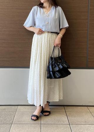 ・シンプルな無地のブラウスは柄物スカートにぴったり。